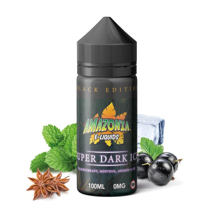 Black Edition Super Dark Ice 100 ML E-Liquid by Amazonia: Is the perfect blend of tangy Blackcurrant followed by a cool blast of Menthol freshness and a kick of Aniseed and not forgetting layers of ice for that wow factor.